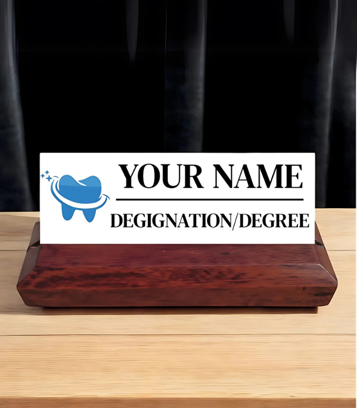 Upgrade your office space with our Dentist Desk Name Plate. Made of high-quality materials, this nameplate adds a professional touch to your desk. Show off your expertise with this sleek and modern addition. Impress clients and colleagues alike with this simple and elegant desk accessory.