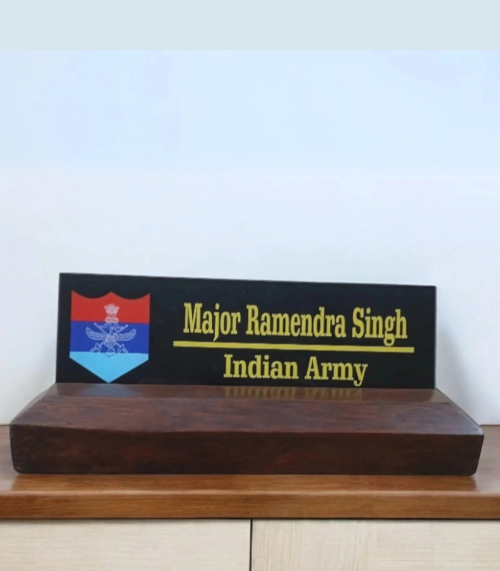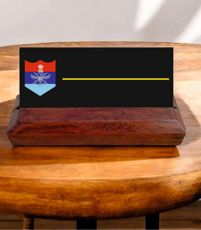 This desk name plate features a proud national emblem that showcases your devotion to military service. Made with high-quality materials, it adds a touch of sophistication to any office space. Honor and represent your commitment to serving your country with this elegant desk name plate.